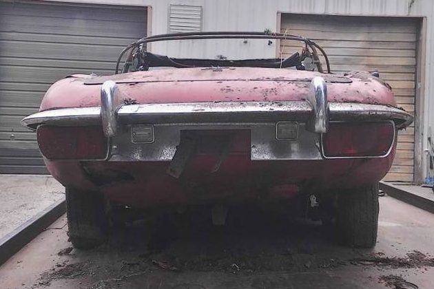 Where do you start with this car? I agree with Enzo Ferrari when he said that the E-Type was the most beautiful car ever built, and there’s no doubt that this Signal Red example would have been at some point. Sadly, that point appears to have been many moons ago. When you open the trunk of an E-Type and run the risk of it slamming into the windshield, then there are probably some problems that need facing. It’s pretty obvious that the frame is rotted to the point where the car is ready to snap in half. The floors and inner rockers will almost certainly have suffered the same fate, while virtually every panel is suffering from severe rust damage. It’s probably a good thing that glass doesn’t rust because apart from some external trim pieces, lights, and possibly the wheels, that looks like all that could really be worth salvaging from the body and frame.