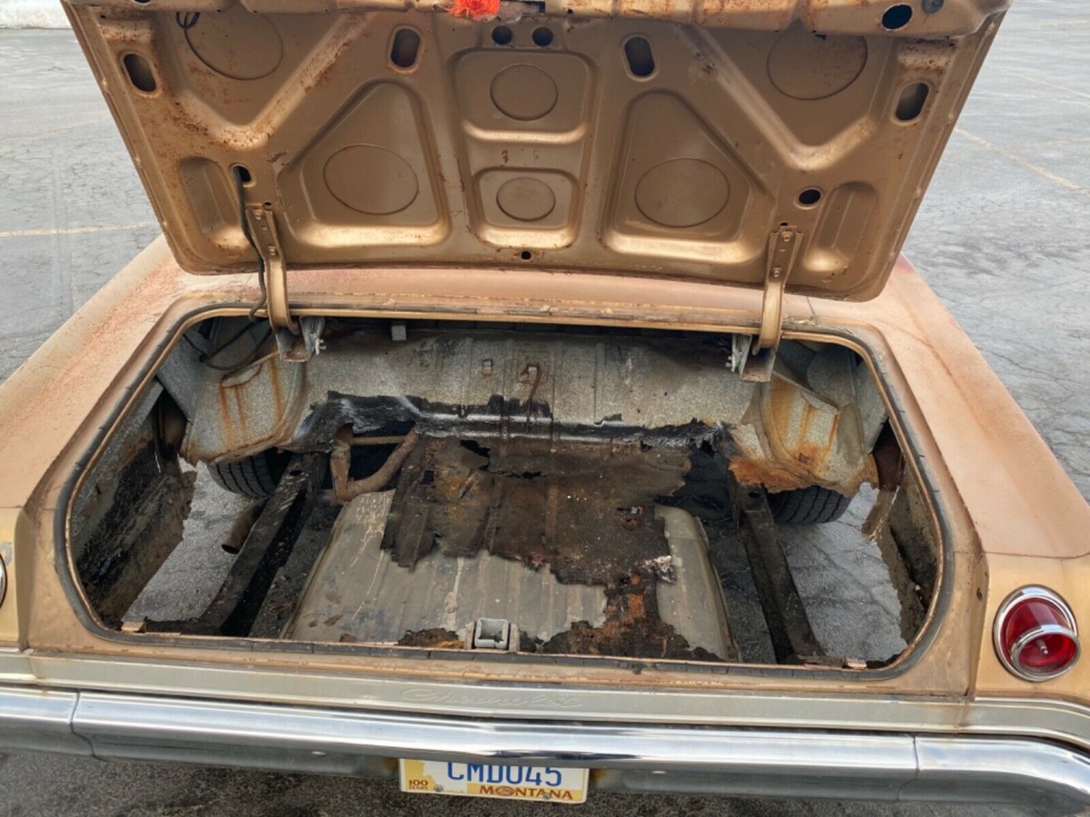 Now that’s some serious rust. When you open the trunk of a classic and find a floor that looks like that, it is very easy to think the worst. However, the news isn’t bad, and there is a very good reason why the Impala has rusted the way that it has. The original owner used to load the trunk up with bags of salt, and it seems obvious that some of the load found its way out of the bags. I guess that there is a lesson there, which would be to either put down some protection if you are going to carry those sorts of loads, or clean any spills ASAP. When the current (and 2nd) owner purchased the vehicle, this is what he found. The trunk pan, drop-offs, and the lower sections of both rear quarter panels have dissolved, but that would appear to be the extent of the significant rust in the Impala. The owner says that the floors and rockers are solid, and even the rear frame rails seem to have survived with no significant damage. The lower front fender on the driver’s side has a spot of rust that could be addressed with a patch, but everything else looks quite promising. The trim and chrome look like it would respond well to some polish, while the glass is all good.