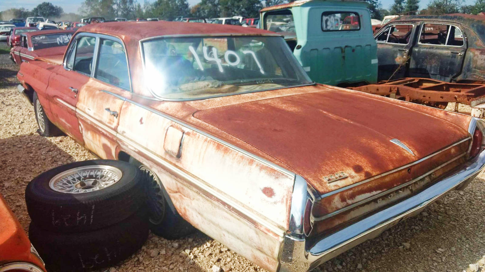 Most look to have solid bodies , just surface rust, but, with no details, probably need more work than their worth . some would have liked back in the day.. the 68 Country Sedan, and the 62 Catalina 4 dr for ex. Sunbaked old cars if only, if only!