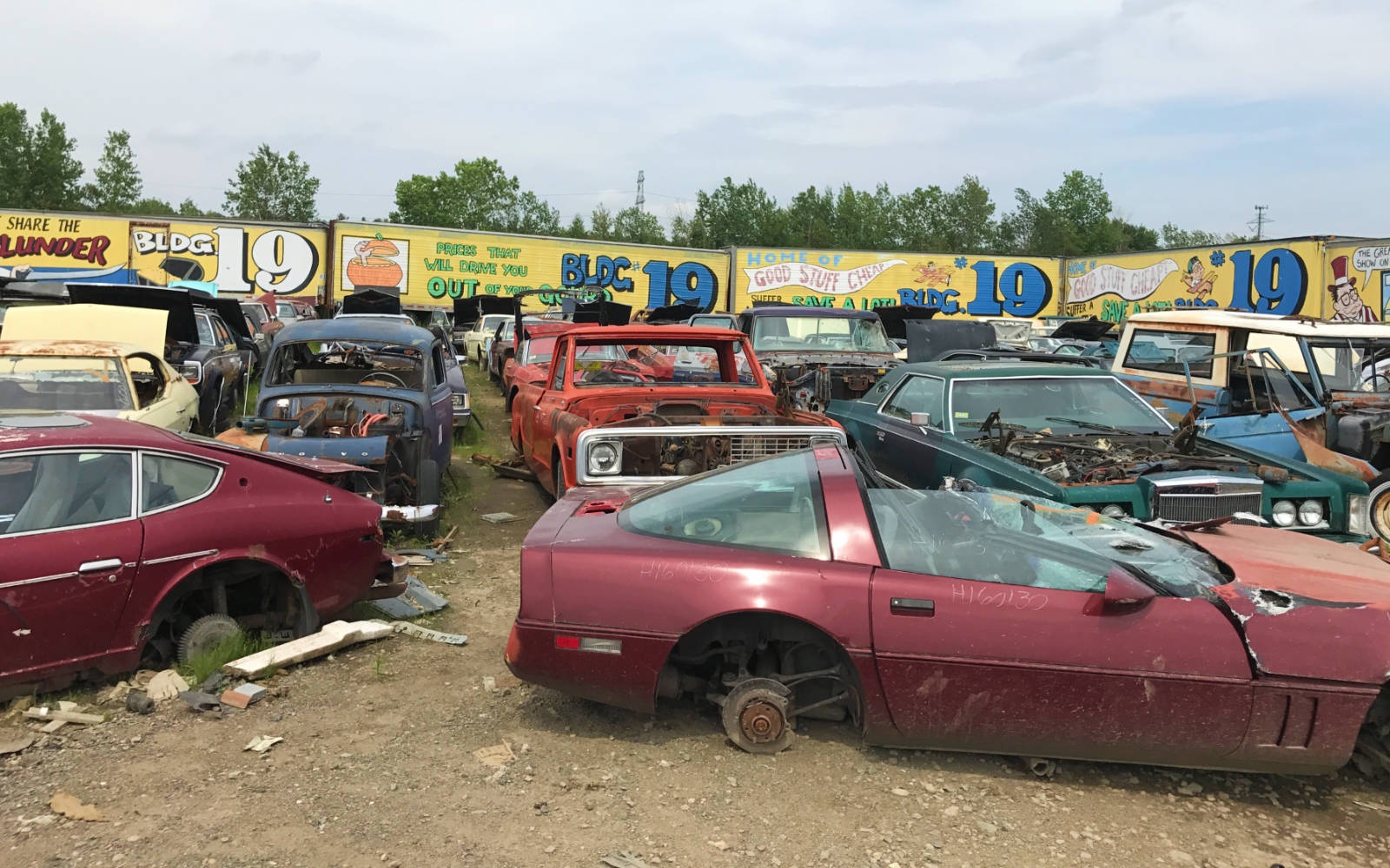 From Scott M – I was at the junkyard today and thought I would pass along these photographs to others. I asked for one price and they said for instance the Maroon Chevy Chevelle was $800. Basically they are selling these as parts vehicles without a hey title. There’s a company in Vermont that you can get a title though. Whether you go that route or buy something just for parts, call the yard and ask them for what you see there in the photos. If somebody needs me to go over there and take a look at something I will be happy to do that it’s only 15 minutes away from where I live.