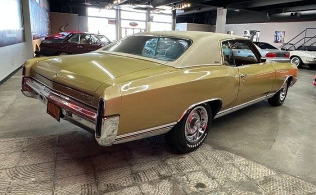 This “Monty” looks as sharp as they come. It sports a triple gold appearance, starting with Champagne Gold paint that’s either original or a superb redo. The bucket seat interior is said to be original and presents as first-rate. If the odometer reading is legit, this Chevrolet has traveled less than 30,000 miles in 56 years. Besides the 402 V8, it has a TH-400 automatic transmission. Because of the torque this engine produces, a 12-bolt rear end is attached to the rear wheels.