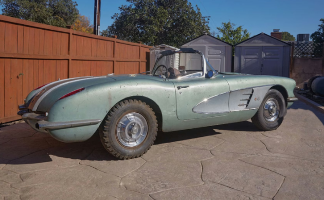 The ’58 Corvettes were easy to spot compared to the ‘57s, though the same basic body was still in play. The cars had quad headlights for the first time, chrome accents adorned the trunk lid, and a “washboard-style” pattern ran across the hood. This 1958 edition has been in the same family since 1963, when it was treated to a 327 cubic inch V8. It’s been in storage for decades and will need a thorough restoration. Located in Los Angeles, California, this once-loved project is available here on Hagerty, where the current bid is $28,000 with no reserve. Our appreciation extends to Barn Finder “PRA4SNW” for this cool tip!