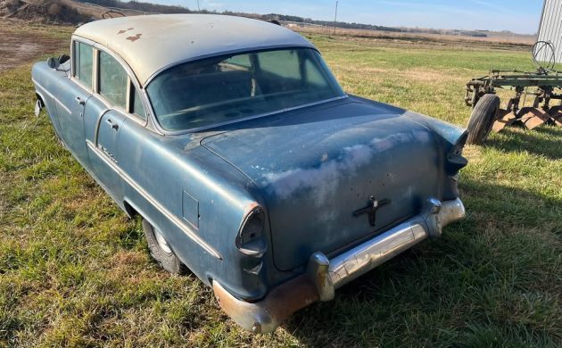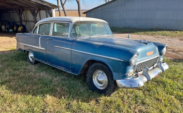 Can you imagine being a Chevy owner shopping for a new car in late October 1954? Perhaps you hop into your 1952 Bel Air and head down to the dealership for the big unveiling; the glass has been painted and postered up for days, maybe weeks. You’ve been planning to trade in your sedan anyway; maybe the new ’55 will strike your fancy. What do you think when you see it? You might be surprised at first, but only the staunchest traditionalists wouldn’t have warmed to what was probably the most revolutionary Chevy ever sketched under Harley Earl’s watchful eye. There aren’t enough words to be said about the famous ’55s, and even the sedans have long been coveted; over 1.7 million 1955 Chevrolets were sold, and the most popular among them was this Bel Air four-door sedan, with 366,293 finding new homes with new Chevy buyers. Barn FindsĀ reader Zappenduster spotted this one on Marketplace in Sterling, Nebraska; it’s been in the same family for 60 years, and that family is asking $5,000 or best offer.