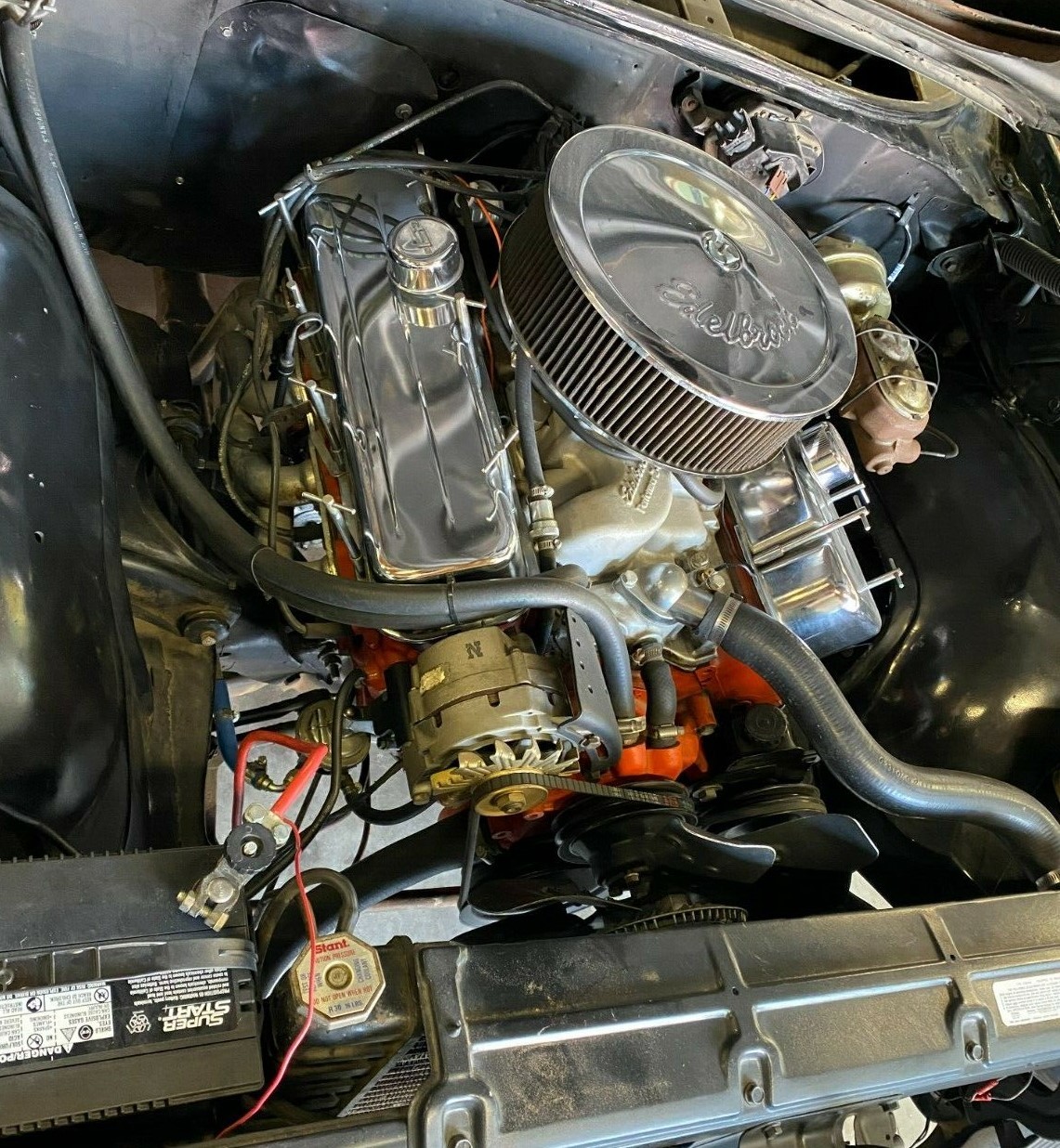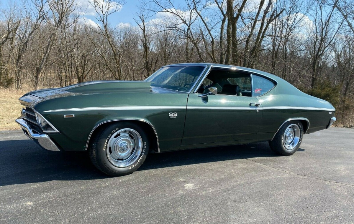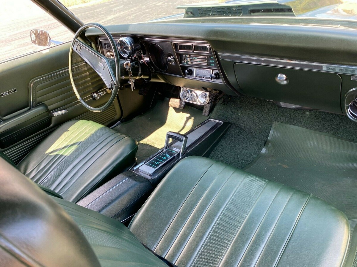 This ’69 Chevelle Malibu looks really nice with its Fathom Green paint being flanked by a dark green vinyl interior. The seller says its an older repaint with a deep clear coat that makes it shine day or night. There are a few blemishes in the paint, so it’s not show quality per se, but the body panels are all super straight. The hood includes a three-inch fiberglass cowl that was molded into the steel. There is no mention if there has every been any rust but being kept inside a garage when not used the past 20 years has certainly help it stay in shape.