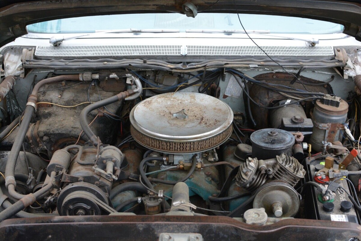 Two sets of photos are provided. One group shows the vehicle inside the garage wearing years of dust and dirt. The other set shows it out in the daylight where it may have been given a bath. The latter shows a car whose body, paint, and ample chrome look to have survived surprisingly well. And except for a couple of places where some duct tape has been applied, the interior looks rather nice, too. Once the seller locates the keys, the buyer can begin the process of fixing up the automobile. While we’re told the Buick is offered by a private seller, the lingo sounds like that of a dealer. Such as offering to facilitate delivery.