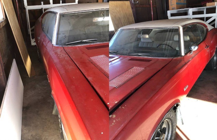 1983 was a big year for this car, as the motor and transmission were also both rebuilt at that time. We’re told that maybe 1,000 miles have been accumulated in all that time. We’re guessing this is a 350 cubic inch Rocket V8 accompanied by a Turbo-Hydramatic. Perhaps after changing all the fluids including the fuel (the seller suspects bad gas), it will want to run again. But the buyer will need to plan on towing the car home because the brakes are shot, and it wouldn’t be drivable even if running. And no mention is made as to how old the tires are (were they last changed in 1983, too?).