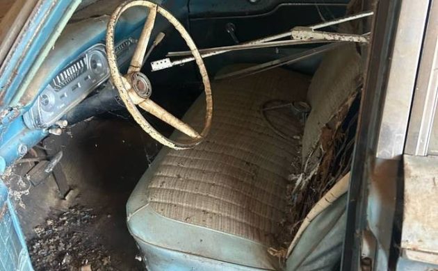 I’m not sure how long the driver’s window has been rolled down (about two inches), but that doesn’t help in preserving a car’s interior. The Falcon’s original cabin has seen its share of critters over the years and would definitely need attention. Even though Falcons didn’t come with a lot of standard features in order to keep the car cheap, this one was has the most expensive option for 1961: the $163.10 Fordomatic automatic transmission. It also has the optional 170 Special Six engine that was new for ’61 that generated 101 horsepower when it left the factory. There are no photos of the engine and we don’t know when it last ran or if it turns over. The Falcon is nesting in Oakland, Oregon and is for sale here on craigslist for $3,500. A thank you to Kendra for spotting this blue bird and sending it our way. So, what do you think? Is this Falcon Fordor worth resuscitating back to life?