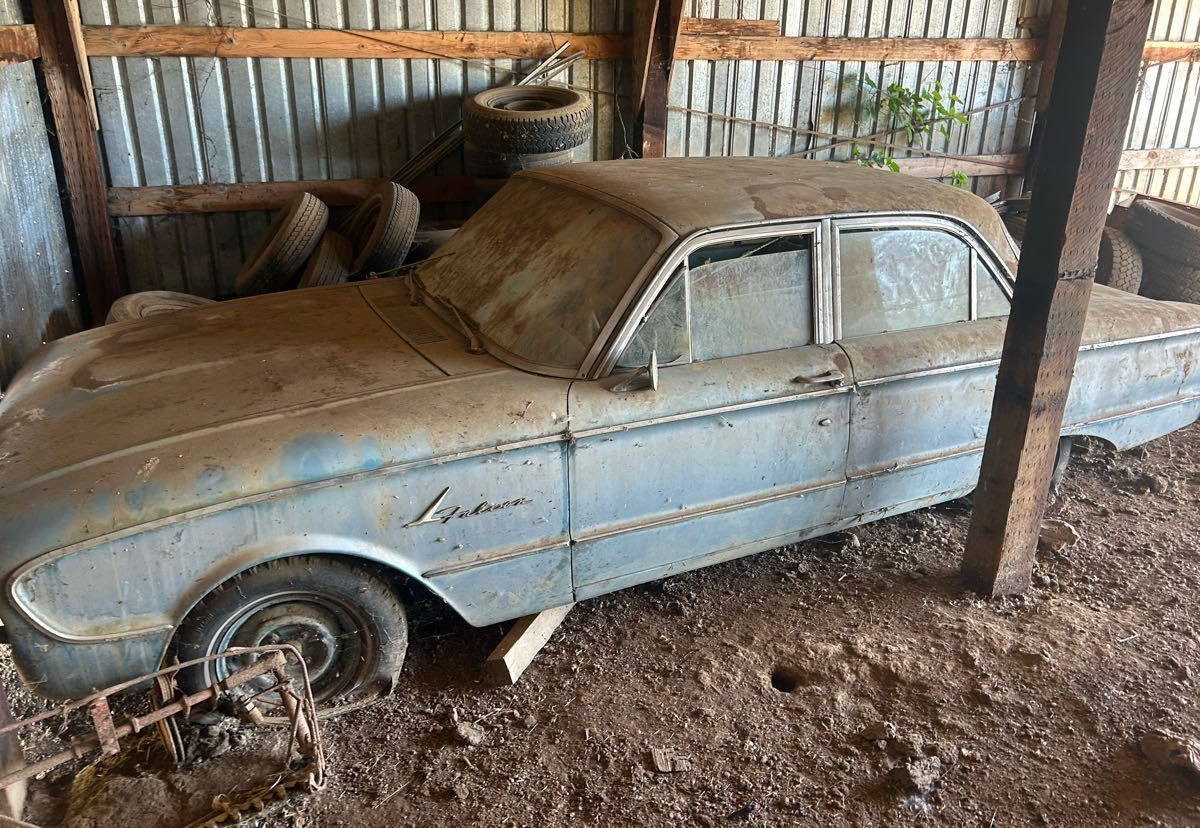 The seller (who is selling the Falcon for his uncle) is very sparse with details and descriptions and shares only three photographs. He says it’s been his uncle’s car for 57 years, which would make it 1968, so I’m assuming his uncle was the second owner. It’s hard to gauge the true condition of the Falcon or how long it has been sitting uncovered on a dirt floor which isn’t ideal for longterm vehicle storage. It left the factory in Cambridge Blue and the glass looks to be there, but I can’t tell if the trim is all there or not.