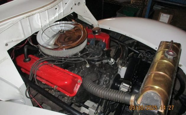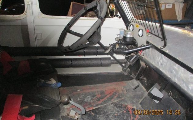 Up front, the engine bay seems a very tidy mix of a later model V-8 with modern features such as an alternator and what may be a flex-fan combined with an old school polished radiator top. The fenders and cowl show no signs of previous damage either. Once again, there is evidence that the builder knew what they were doing. Take a look at the remote oil filter setup next to the driver’s side wheel well. It is doubtful that this car could be built for the $9,900 asking price.