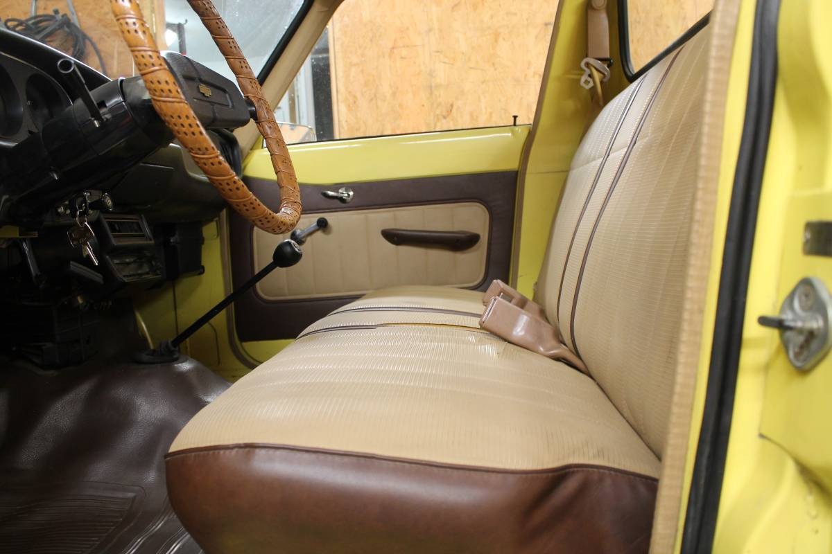 This Chevrolet LUV even has factory air conditioning, but unfortunately, the compressor has been removed. The dash also features a sizable crack. The radio and gauges still work. The selling information states this has an automatic transmission, but I’m thinking that is a 4-speed manual.