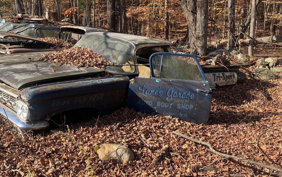 Located in the woods near Loudon, New Hampshire is a salvage yard that contains at least fifty old cars and trucks. There are more than that out there, but those are just the ones we could identify from some fifty-five photos that are provided. Posted here on Facebook Marketplace, we’re told these cars are headed to the crusher unless someone steps forward to save one or all. Most look like parts cars on a good day, while the rest are too far gone to save. Thanks, AMXBrian, for the heads-up on this stash!