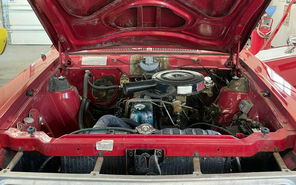 At the opposite end of the spectrum from a V8, this 199 cubic-inch inline-six with 128 horsepower is the smallest engine available in a Gremlin for 1970. This one has a Borg-Warner three-speed automatic. The biggest engine this year was a 232 inline-six, the V8 wouldn’t show up until 1972 when a 304 V8 was an option. The seller says that this one runs like a champ and they wouldn’t be afraid to drive it anywhere. Hagerty is at $7,000 for a car in #3 good condition but that’s with the 232 engine. That value is $0.01 above their opening bid. With that rust that’s where I’d put this one but I don’t make the rules on values, the bidders do. $11,200 is the reported #2 excellent condition value. Would you keep the six or drop in a V8?