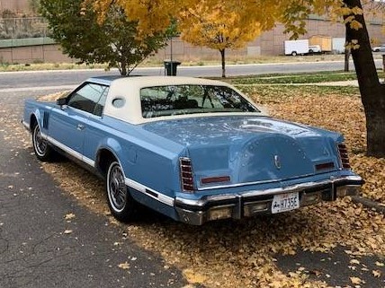 In 1977, while the Thunderbird benefitted from downsizing to the old Torino frame, the Continental Mark V stayed on its previous 120.4-inch wheelbase, and while down about 300 pounds in weight, it actually grew about two inches. The Mark V also had sharper edges and boxier styling than the Mark IV had. Here is a 1978 Continental Mark V for sale here on Craigslist in Salt Lake City, Utah.