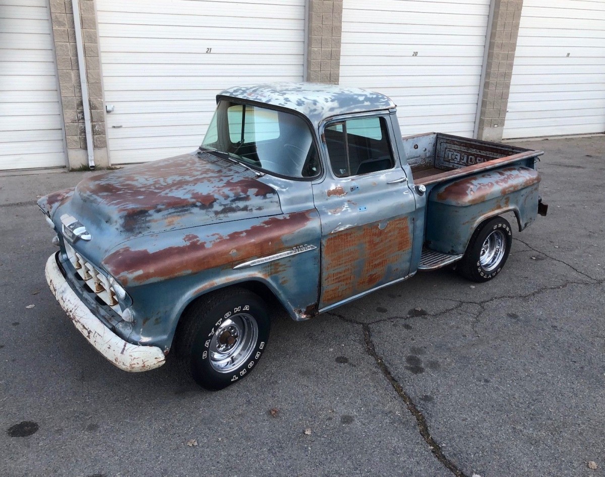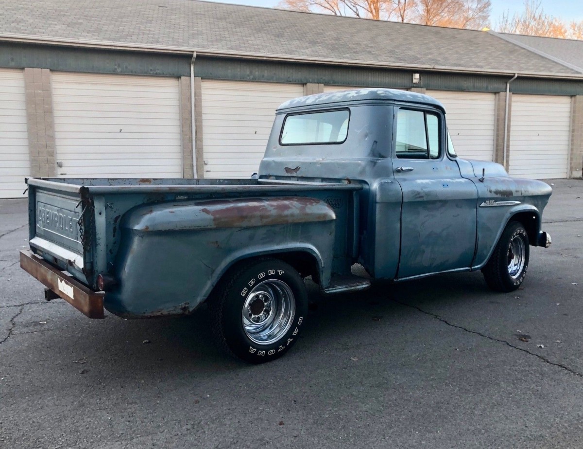 I like this truck, but then, I like this series. I’m curious as to what originally powered this truck. If it was a 265 that would be more than adequate. Of course a 235 would suffice. If this came my way the chrome wheels would go the way of the dinosaur. Fix the rust; give it a proper paint job and put some boring 15 inch wheels on it with those pointy stock hubcaps and it would be a decent truck—for me…