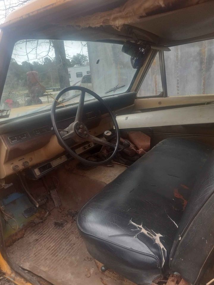 International Harvester first equipped the early Scouts with a 93 horsepower 152 cubic inch inline four-cylinder engine. Later models could be purchased with a 196 cubic inch inline 4-cylinder was introduced in 1966, an inline 6-cylinder (1967), a 304 cubic inch V8 engine (1968), and a 345 cubic inch V8 engine (1971). This Scout II is said to be equipped with the venerable 304 cubic inch V8 engine but it looks like it is going to need some work. Based on the engine bay, I don’t think that yellow was the original color of this Scout but I could be wrong.