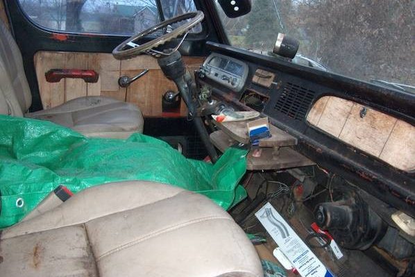 Unfortunately, there’s not much information about this cool van on the craiglist ad. There are no engine pictures, although the seller says that it engine runs, but tends to overheat. Hopefully it would just need a few small adjustments to get back in good running condition. This is the only good interior photo in the ad. The seats don’t look to be original, and they don’t look that great either, although they do seem to be pretty well intact. They most likely just need a good deep clean.