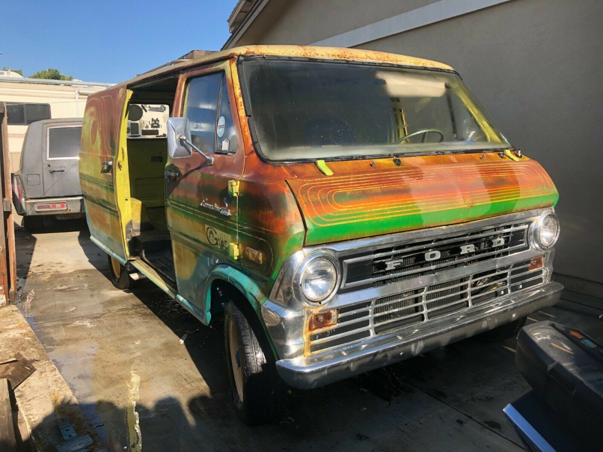 I’m not sure if the kids are still watching Scooby-Doo reruns on TV, but describing a van like the one seen in the hit cartoon hasn’t lost its popularity among van enthusiasts. The “Mystery Machine” had a very specific paint job that certainly made it an instant icon, so now any van from the same period with a slightly psychedelic color scheme gets lumped into the category. This 1974 Ford Econoline here on eBay was a runner before getting parked for a few weeks; now, it’s said to not want to fire up and is being sold as such. The seller claims the engine and transmission were rebuilt a few years ago, and bidding is currently at $1,525 with no reserve.