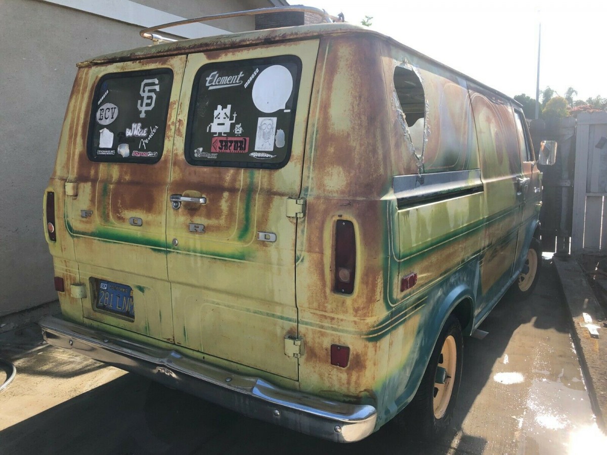 The interior has been largely stripped like so many other project vans, which does save the next owner some of the work that would be involved in stripping out an old, funky interior. But it can also make a project seem more daunting, as it lays bare how much work the next owner will have to do to bring it back to life. The listing notes that the driver-side back door doesn’t want to open and that the passenger-side front window is missing a regulator. The seller notes that while the Econoline is largely solid, there is some rust in the driver’s side door; otherwise, the description indicates your rust issues will be minimal if you decide to take this van project on.