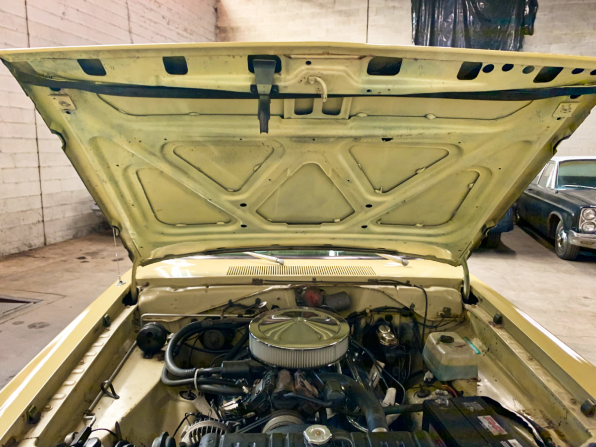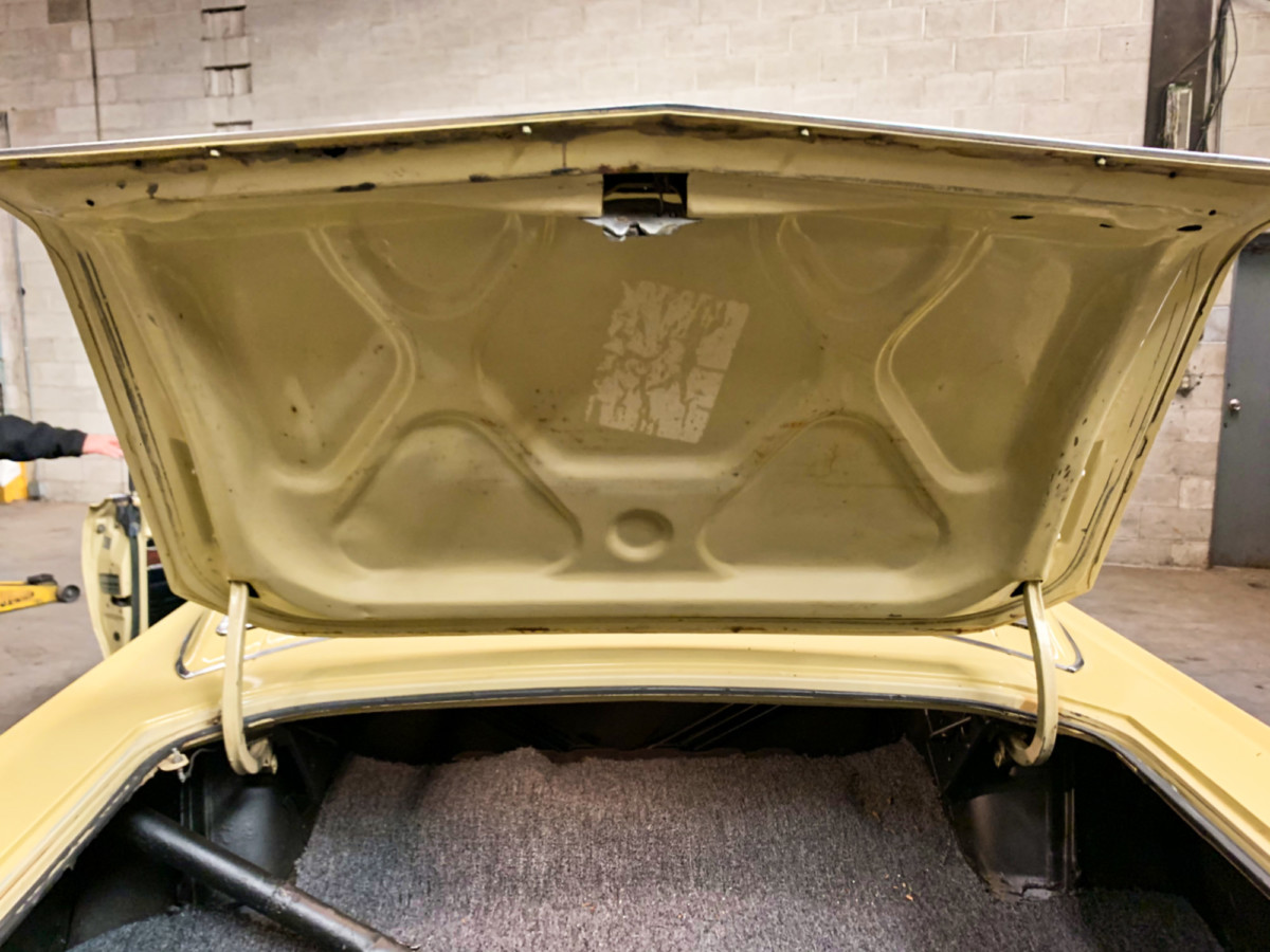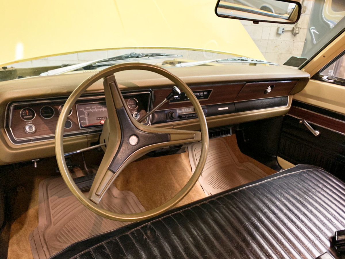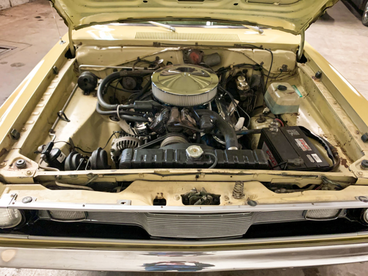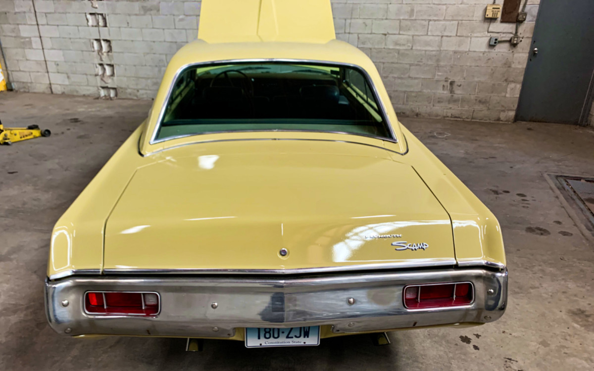 The Sunfire Yellow paint looks great and isn’t a color you typically see. It’s a respray, but in the original color and Ernie states that there weren’t any rust or problem areas, it just needed a fresh coat of paint to look it’s best again. If you know your Mopars, you probably can easily recognize the difference between the various A-Body cars, but for the rest of us, the differences may seem subtle. The Scamp shared the Dart Swinger’s main structure and rear body panels but received the Valiant’s front end. While it doesn’t drastically change the car’s profile, it does change the look enough to make it stand out from the Dart. The lack of massive hood scoops definitely gives it a more subtle and grown-up appearance.