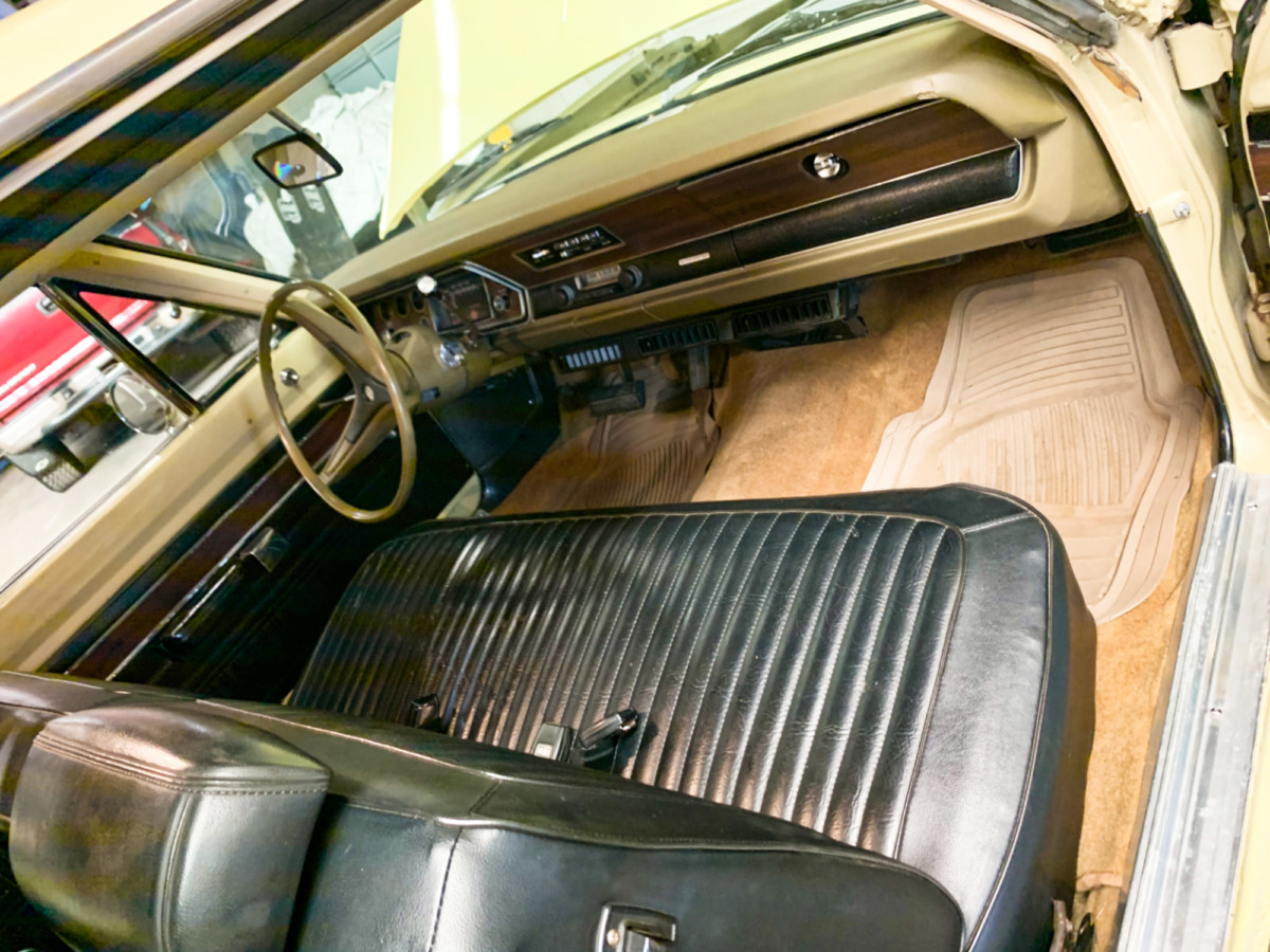 You’re right, in the pre 1973 A bodied cars the metal parts of the inside door was painted to match the interior, seeing that the seat is a lot easier to swap out than the dash, the car should have tan seats and door panels . The lower quarters look like cheater panels ; they have really angular lines like they were made on a brake . Maybe its the camera, but the car looks too yellow , the under hood pics show what the color should look like . I know I’m being picky on the other parts ,like the wrong gas cap, dodge hubcaps (and a high line car like this would almost cetainly have full caps ) and a lack of a vinyl roof which Scamps had ,all of which would bring the price down a bit for me -I like the car,but I would have to change them !