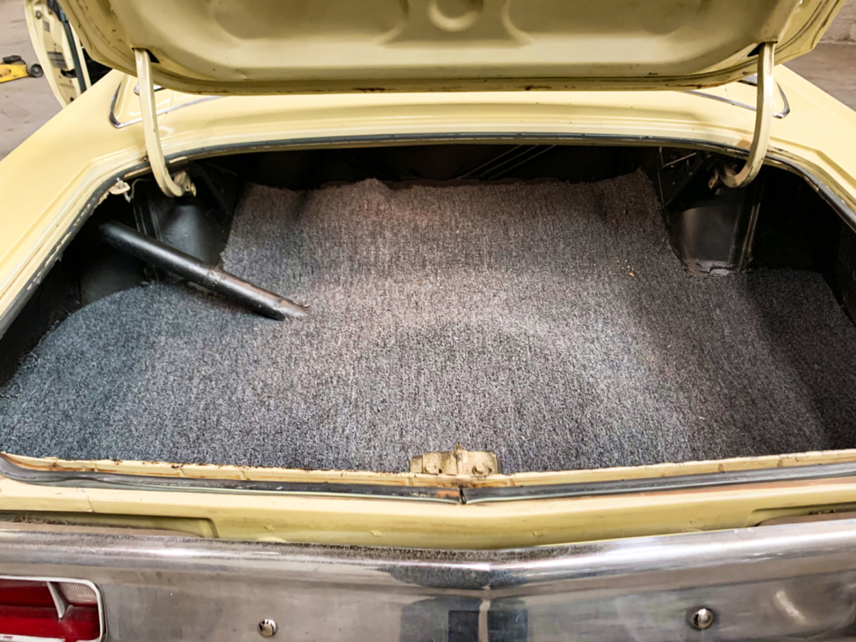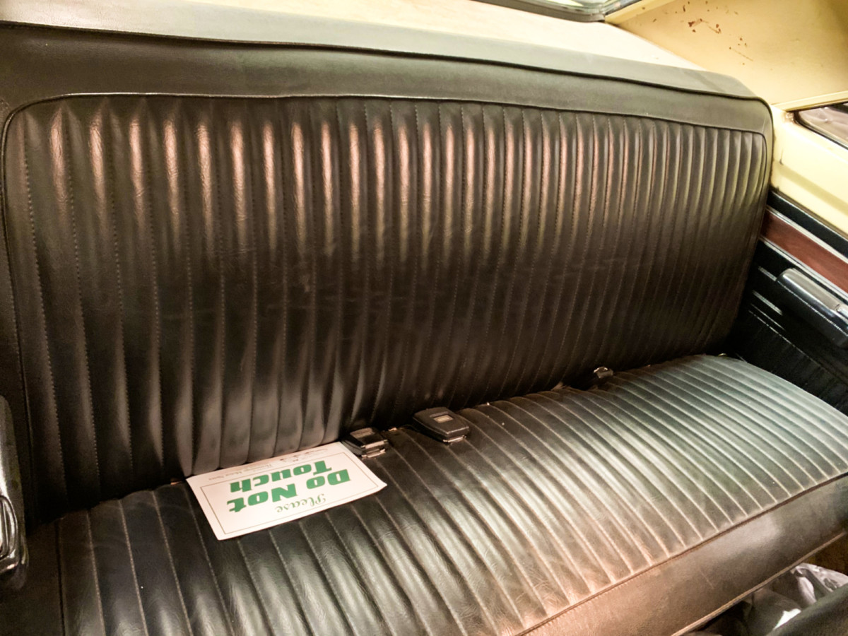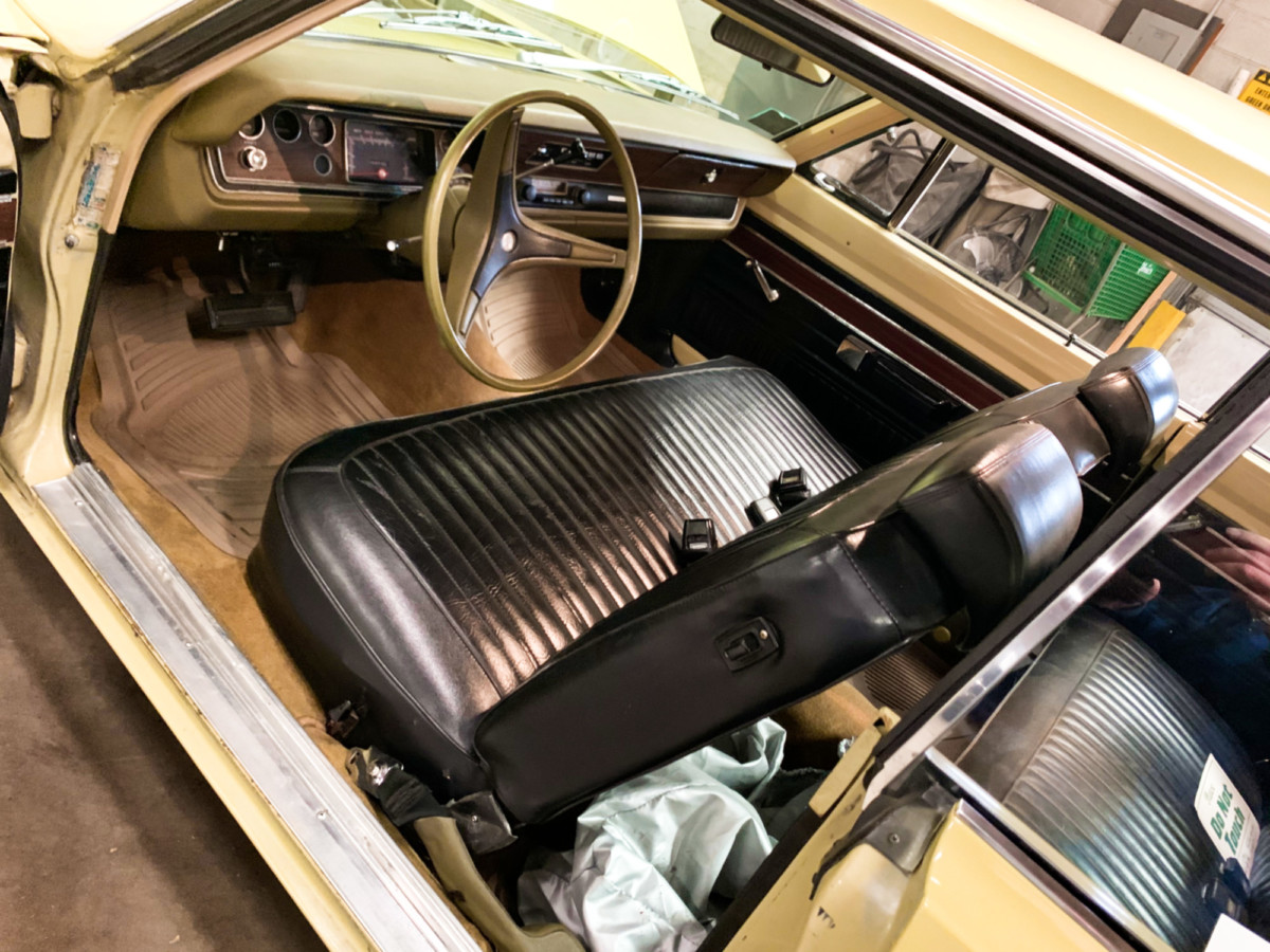 That interior is questionable. I do not remember seeing a black vinyl seat and matching black door panels in a gold interior. Trunk mat is not correct either. I would be interesting to see the complete VIN number to see if it was Built at Hamtramck, Mi Plant Plant Code 4030 or the Windsor Assembly Plant Plant code 9103. Who ever did the rust proofing on the car did a great job as it shows in the quality of the metal.