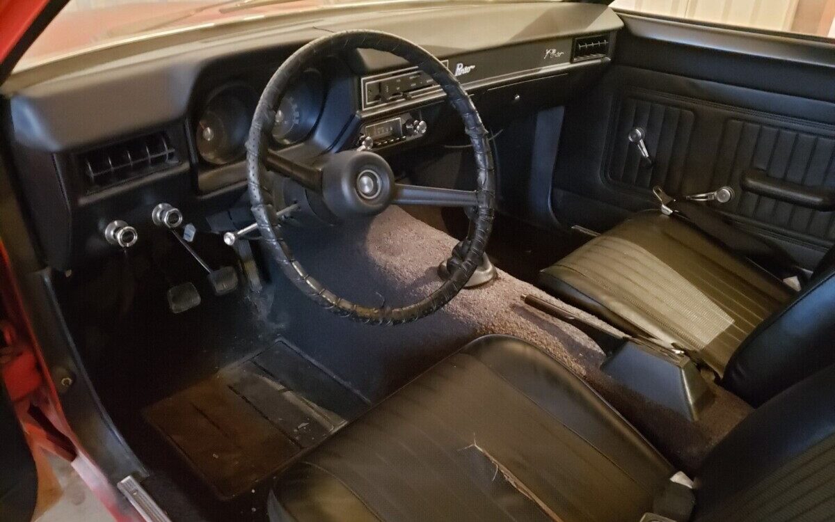 Black, basic black, as Joe Pesci tells us is his preference in the 1983 film “Easy Money“, is what we find inside this Pinto. It’s about as spartan and austere a dark vinyl environment as you’ll find. That said, with the exception of a split driver’s seat bottom, it doesn’t look too bad. The dash pad, carpet, and door panels all check out though the red trash bin from 2015 has been removed…