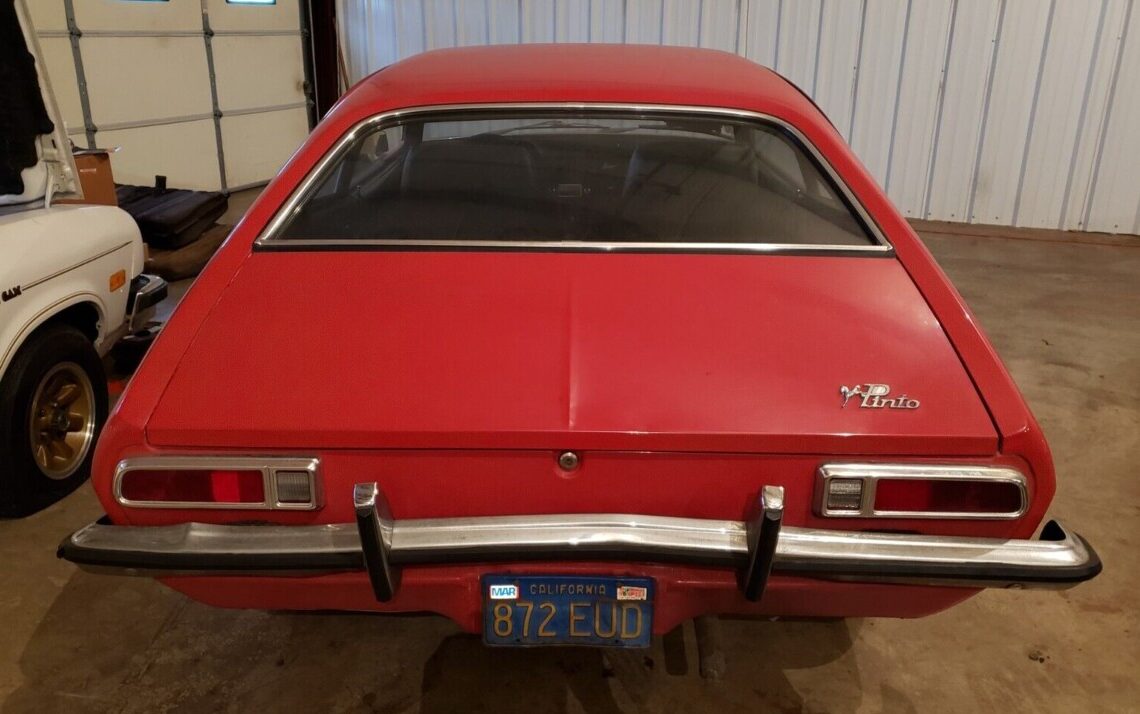 In 2015, said Pinto was stated as being a one-family-owned California car but it now is a Kentucky resident (still wearing CA tags, however) though there is no mention made of its familial lineage. The mileage recording, at 43K miles, is unchanged, and this freshman year Pinto is still wearing its dented rear bumper – but a new one is included in the sale. It shows as if wearing its original paint and the seller states, “I tried buffing a little of it and it comes right up. There may be nicks, scrapes, scuffs dents, dings, and other imperfections. The car is dirty from sitting in storage“. The 2015 images definitely show a chalky-looking finish.