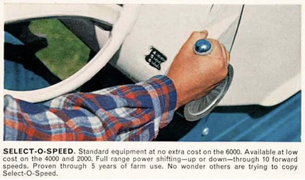 We had a ’64 4000 diesel for many years. I called the Select-O-Speed the “Jerk-O-Matic”. 4th and 5th gears were the most used working gears, and the roughest shift. 5th finally went out, so I sold it and bought a Massey-Ferguson 165.