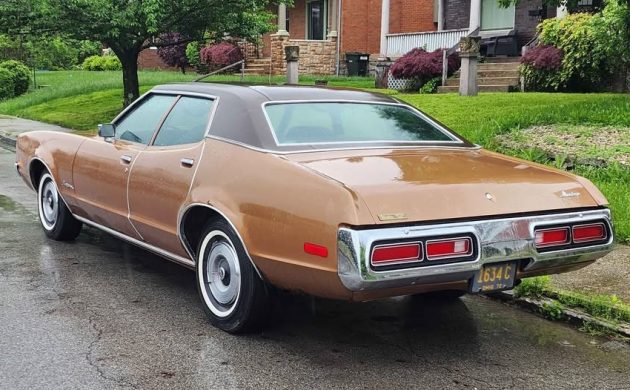 The second generation Montego was launched in 1972, when Ford moved away from unibody construction back to body-on-frame for its mid-sized cars. Frame construction allowed for weight savings and though it sacrificed interior space, it was deemed satisfactory for Ford’s downsizing endeavors. Ford split its chassis size according to body style: in 1972, the four-door sedan sat on a 118″ wheelbase, while the coupe rang in at 114″. A variety of engines were offered; this one is a 160 hp 351 Windsor V8 paired with a three-speed automatic. The seller replaced the fuel and accelerator pumps, and cleaned out the carb. He reports that it runs and shifts fine, but the brakes are shot and the tires are old bias plys.