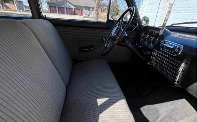 The interior is in fine condition, with virtually perfect seats front and back. The headliner is tight and clean as well. These cars had crept up in price significantly by the time the 1950s rolled around, but we’re still in the era of spartan metal dashes. The clock and the radio might mark this as a Clipper Special – one step above the base model. It would have a glove box light as well.