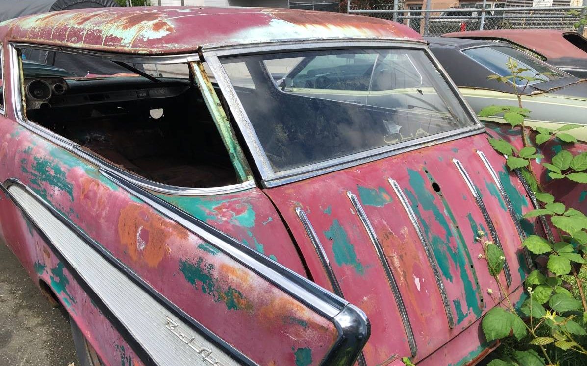 The seller of this car is completely nuts! I sold my ’57 Nomad for $20,000 about six years ago after I made my move to Prescott, Arizona from South Dakota. I had owned it almost twenty years but I didn’t have my shop built yet here to store it and I couldn’t stand seeing it sit outside. It had zero rust and was a no hit car with no dents. I was going to do a complete frame off restoration and figured I would have $50K or more into it doing most of the work myself after I added up the cost of paint, chrome, interior, glass, rubber seals and small parts. I was overwhelmed with my move at the time so I hated selling it but reality set in and I just didn’t have time for it.