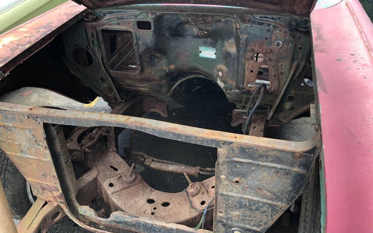 I don’t know about the good body thing!! If you media blast that floor there might not be to much left and the passenger side quarter is going to take time and money!! I would probably be a player if it were below $10,000 but I don’t really want to build a car that costs as much as a condo in Florida!!! However you can’t drive your condo but you can live in your car!! Some wives might agree if you tell them you paid $30K for this!!!