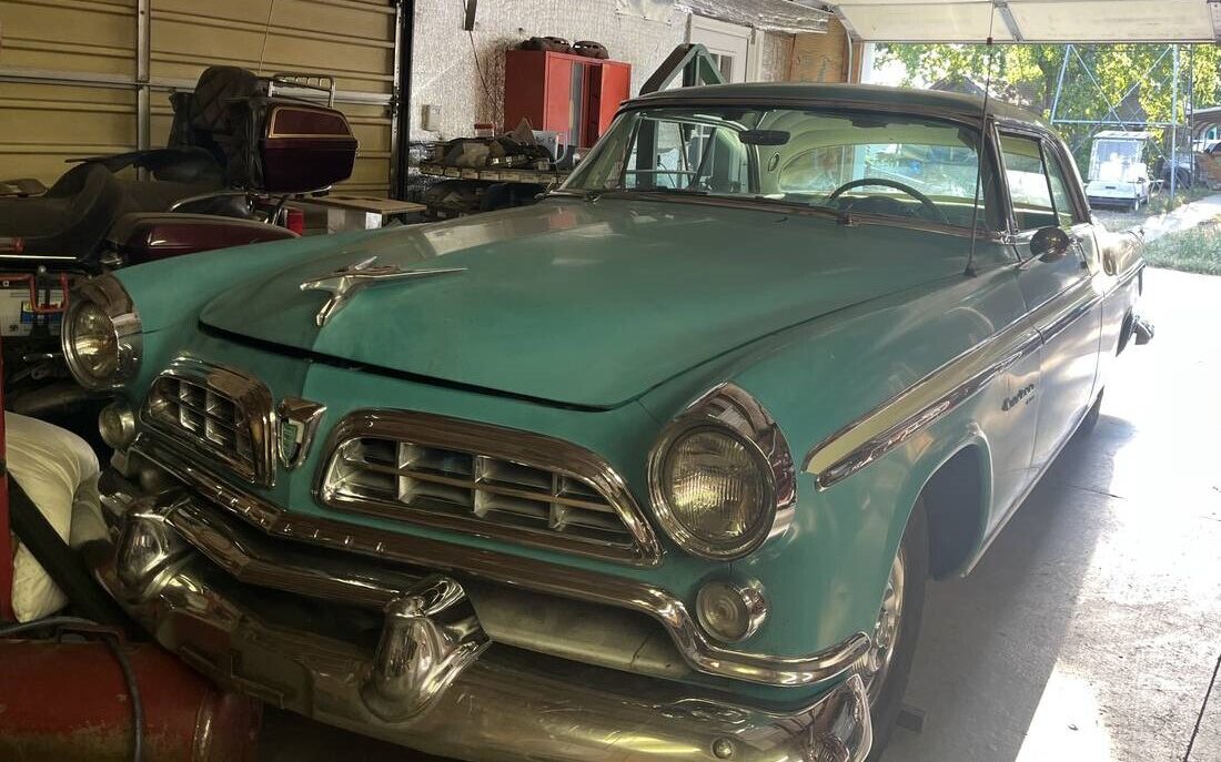 The Windsor Deluxe (the New Yorker was also a Deluxe) was the breadwinner of ’55 Chryslers. Out of 152,777 cars produced in general, 18,274 copies were the 2-door “Nassau” and 13,126 of the 2-door “Newport.” The difference was the level of trim which we’re not sure what version applies to the seller’s car. We’re told this Chrysler was running when it was parked and likely forgotten. The original two-tone paint looks quite nice and the seller says the chrome shows no pitting or flaking after 68 years.