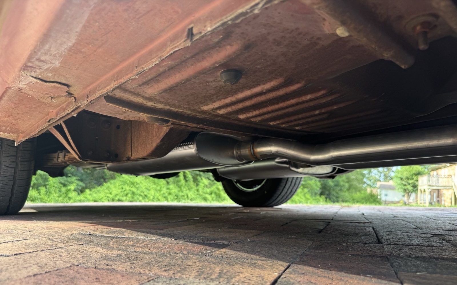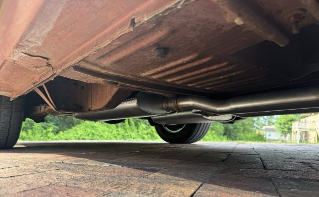The undercarriage shows its 55 years, but it is completely rust-free (aside from the obvious surface rust here and there). Aside from the decades-old paint job, the car is original, down to the vinyl top and all sheet metal.
