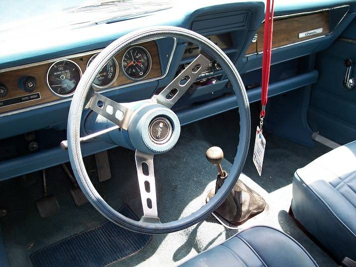 Here is the optional sports steering wheel and the “four on the floor” shifter. The dash looks really nice. Carpet became standard equipment in 1977.