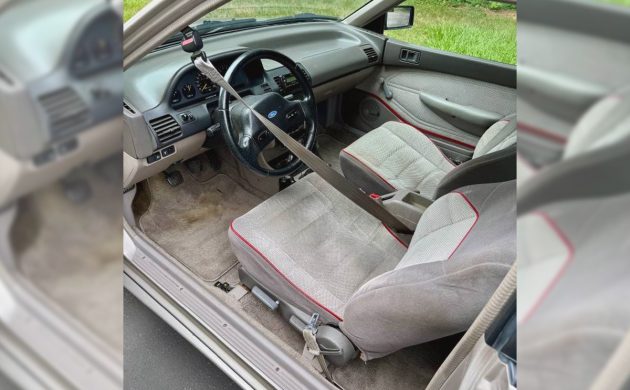 The engine could have used a weekend of detailing, but this car has a whopping 256,100 miles on it, believe it or not! This is a Mazda-sourced 1.8-liter DOHC inline-four with 127 horsepower and 114 lb-ft of torque. It’s sent through a 5-speed manual to the front wheels. They say it has always been garaged but does have some rust and will need a new exhaust eventually. Still, for $3,550, this has to be a great car for the money. Have any of you owned a second-generation Escort GT?