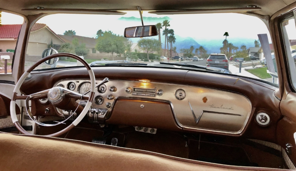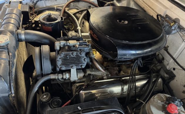 We’re looking at Packard’s first V8. That’s right, the company didn’t graduate from the straight-eight configuration until 1955 – and at that, it took eight years to develop this motor. Overbuilt with 5″ bore centers, a beefy crankshaft, and internal ribbing for strength, the engine offers potential for serious performance. The Patrician received the 352 cu. in. version, with a four-barrel Rochester and a compression ratio of 8.5:1 – good for 260 hp and 355 ft-lbs of torque at 2400 rpm. The standard transmission was the Twin Ultramatic, but the car’s main claim to fame was its Torsion-Level ride, which achieved a floating, level ride using torsion bars and an electric motor to eliminate pitch and control roll. This car’s odometer reads just 87k miles.