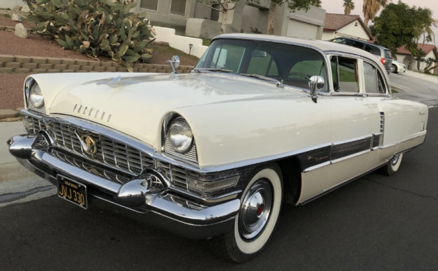 After Packard’s 1954 merger with Studebaker, the financial ramifications of this fusion began trickling into Dick Teague’s styling department: as the combined company continued to lose ground in the market, Teague was pressed to come up with something out of nearly nothing. He revised the entire 1955 Packard line on a shoestring budget, giving every model hooded headlamps, cathedral-arch tail lights, and new trim. Here on eBay is a 1955 Patrician, the company’s last “senior model,” described as a survivor. The asking price is $20,000 or best offer, and the car is located in Lakeland Highlands, Florida. Hey Curvette, as always – genius tip!