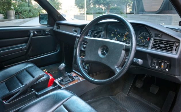 Ayrton Senna teamed the Smoke Silver Metallic exterior with Black leather interior trim when ordering this 190E. Its condition is impressive considering the car’s age and odometer reading. It suggests that this survivor has always been treated respectfully, with no significant wear or signs of abuse. The Aussie sun hasn’t exacted a toll on the dash or plastic, and the wheel is free from significant wear. The air conditioning system was disconnected to comply with Australian regulations, but with the system intact, returning it to a functioning state shouldn’t be difficult or expensive. Adding to this car’s rarity is the fact that it is one of approximately 600 produced in right-hand-drive form. The remaining vehicles within the 19,487 car build total had their wheel on the left.