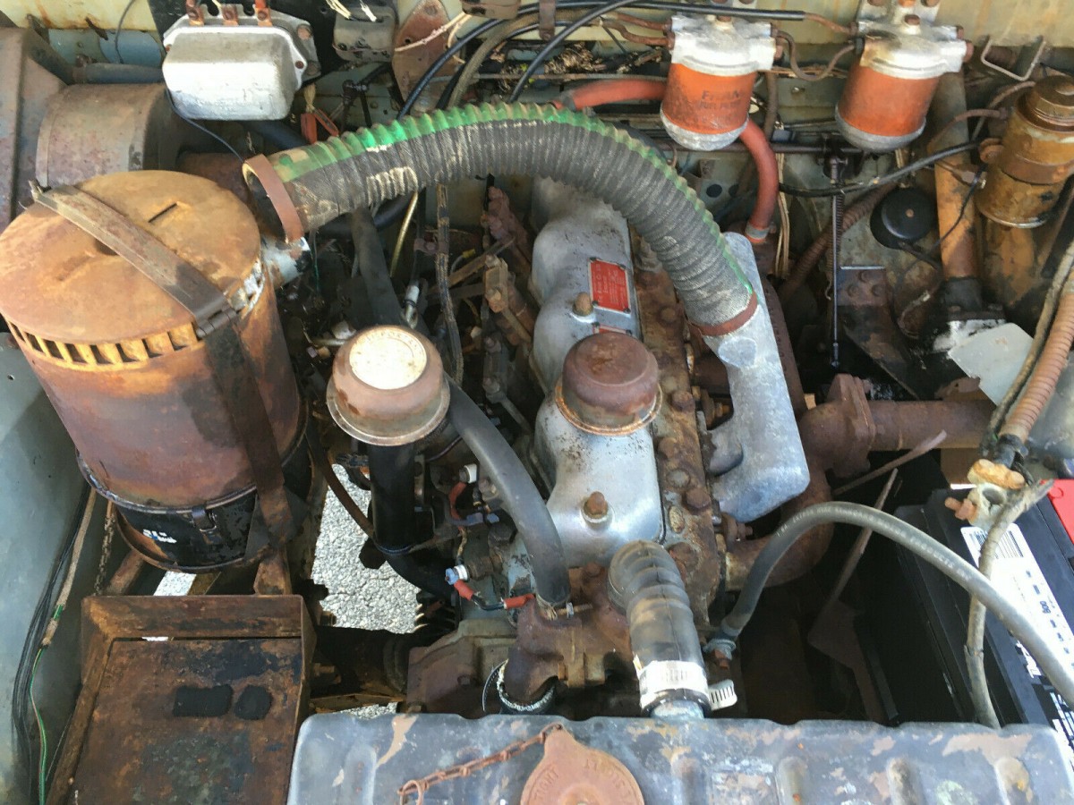 The seller says that they have been able to get the four-cylinder engine started and it maintains idling, but when an attempt was made to move it, the brake and clutch both go straight to the floor. They will not be fixing that. Considering that the truck had been sitting for an extended amount of time, and by the looks of the engine in the photo, it is impressive that everything fired up. A lot of things look like they need to be replaced though.