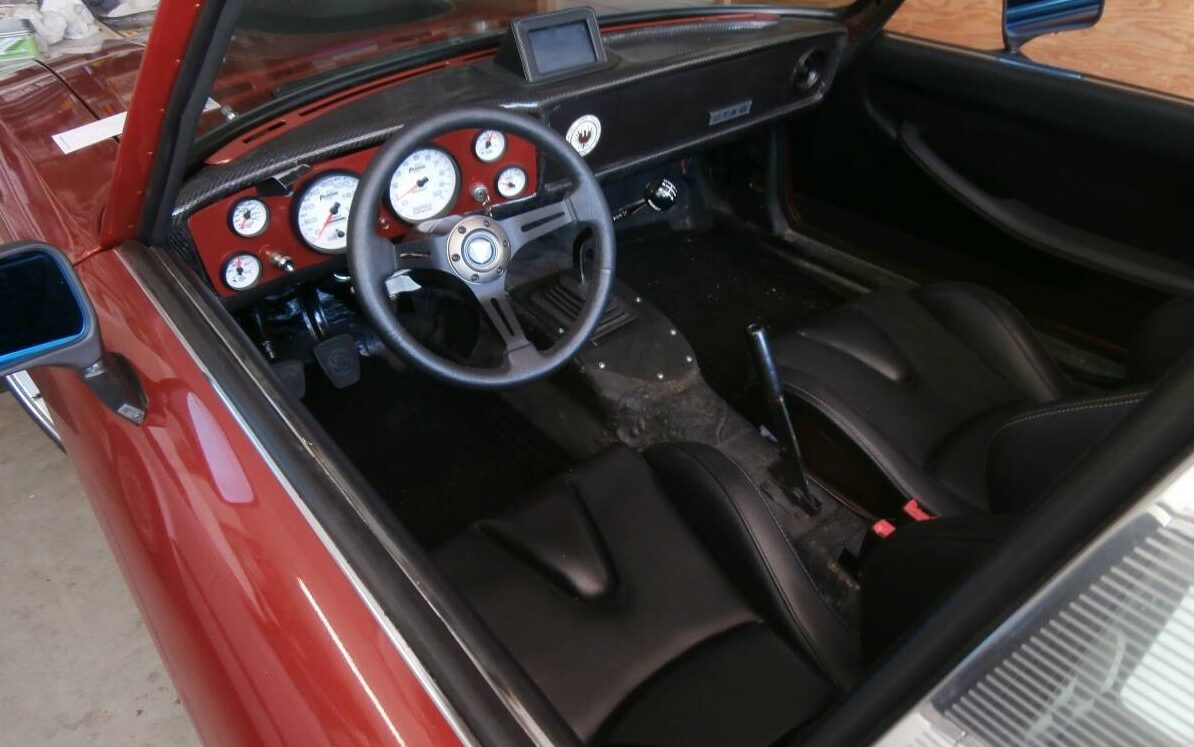 Oh my, my, my I bet this thing is a blast to drive. Hopefully the current owner/restorer reinforced the chassis to handle the over abundance of power the sbc makes, on top of the Wilwood brakes which are a welcome addition. I wonder if there’s a company that makes a hard top for this model, because I’d want to drive it well into the fall season and as early as possible in the spring. One thing I’d change is swapping the Enkei RP-F1’s to something a little more era appropriate, like mini-lites.