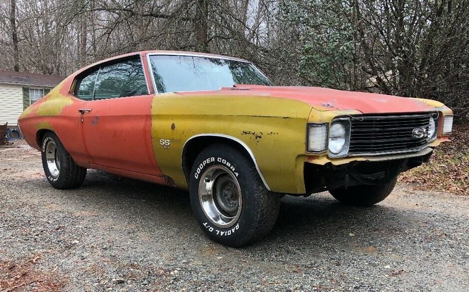 Before the Internet, spotting a true SS 454 Chevelle for sale in small-town America would have been akin to unearthing the Ark of the Covenant with your garden hoe. Today we are Barn Find-Jaded. “Sixties Ferrari Found in a Septic Tank!” That’s nice; pass the salt. Sure; this 1972 Chevelle SS 454 in Stokesdale, North Carolina has a 400 (6.6L) in place of the original 454 (7.4L) V8 and it was an LS5 car making 270 HP, not 1970’s 450 HP solid-lifter LS6. Still it represents the last year of the 454 Chevelle and cowl induction and it “runs and drives great.” Plus, a big-block mid-sized coupe is the very definition of a muscle car! Over eleven bids have driven the market value of this SS listed here on eBay above $5300. Thanks to chevyhardcore.com for some details.