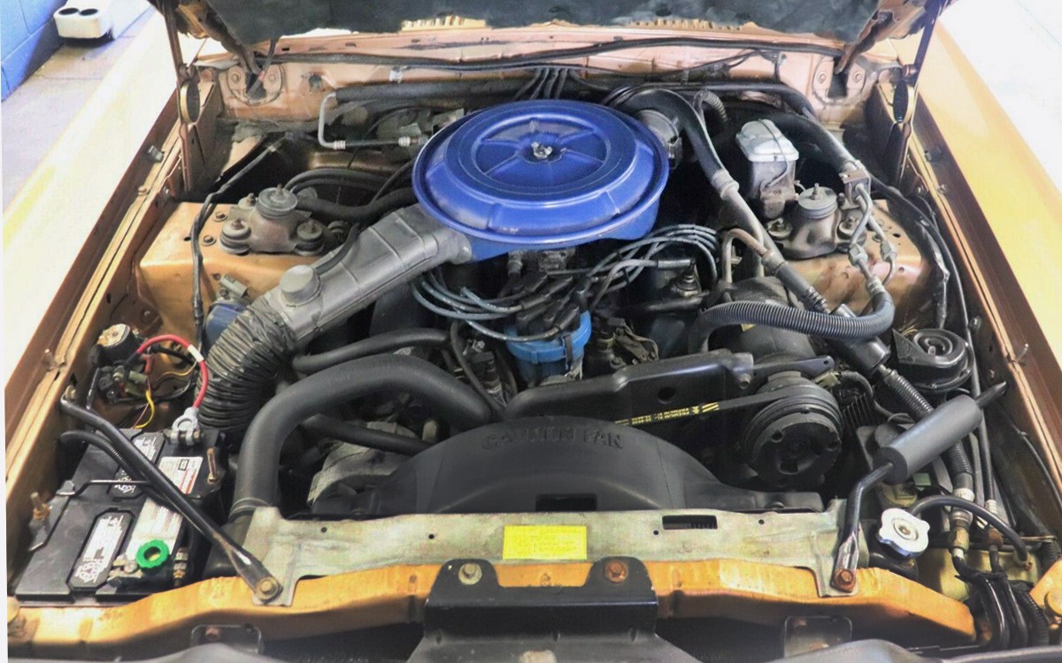 The interior looks perfect and it was quite a bit more luxurious than the Granada or Monarch was. The transmission is a three-speed automatic Ford C4 with a column shifter. The seller tells us that this Cinnamon Gold Metalic exterior color was rare and I don’t recall seeing a lot of two-tone interiors which this one has. At least where the leather seats and door panels are a different color than the dash, carpet, and console. The seats look great and the back seat looks perfect. The trunk is even plush and although it’s not shown in this trunk photo, there is another tire included including the original spare. The seller has provided a great video here on YouTube where they go through this car and then drive it at the end.