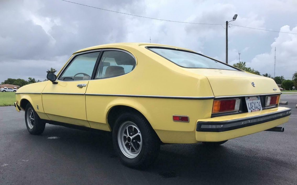 This 1976 model year marked the facelift known as Capri “II,” including a change from a proper trunk to the hatchback you see here. Like most cars, power dropped off as emissions restrictions ramped up. The Capri II carried on through model year 1978. For 1979 Mercury jettisoned the import and slapped the Capri name on a Fox-based version of the Mustang, boasting attractive flared fenders and quarter panels.