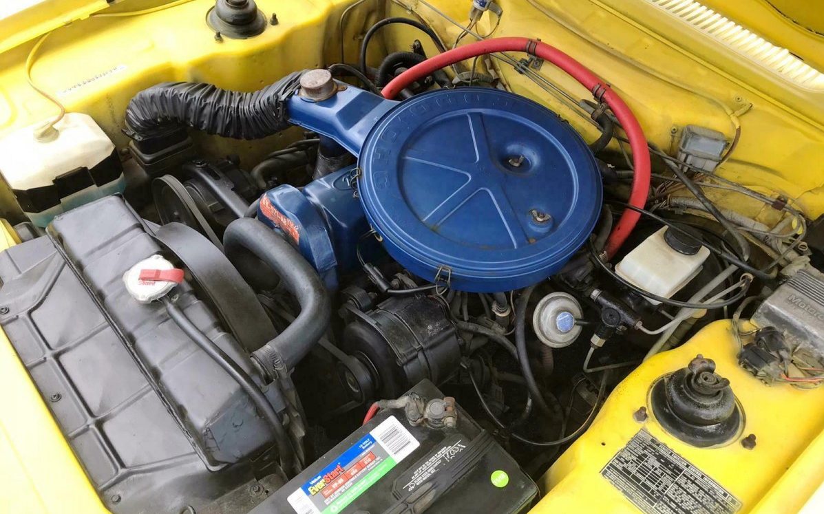 The tidy interior seems to have worn well, and helps support the low-mileage claim. I have a soft spot for these sporty imports as a 1973 Capri was my first car, purchased for $600. Mine came with Corvette-style side-pipes, a look you’ll (thankfully) not see often! First imported to America in 1970, the Capri featured various four and six cylinder engine sizes. With the long hood, short deck, and 2+2 seating, it offered a flashy yet fuel-efficient alternative to American pony cars, and shone as Mercury’s counterpoint to the Mustang II. The Capri brought European flair and autobahn-tested engineering to the table. Most times I kept my driving within 10 MPH of the posted speed limit, but on several occasions I’d follow someone who dropped the hammer on a long stretch, and my ratty rusty Capri would rise to the occasion, the 2.6L Cologne V6 pulling hard in the upper revs to reel in those who thought they’d dust me off with their 180 HP V8s.