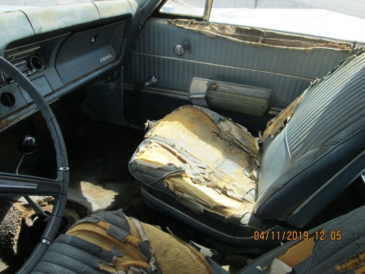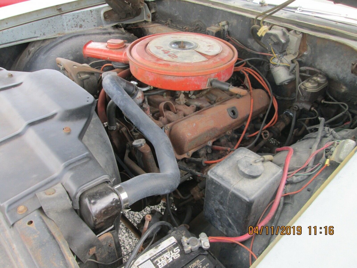 Speaking of shabby, that wouldn’t be a bad word to describe the appearance of this 442. Don’t be fooled though, because underneath, this is a pretty solid car. There are some photos of the underside of the car, and the floors and frame look good. There are also a couple of photos of the trunk, and that also looks solid. The rust that will need to be dealt with is all visible, and it’s all pretty typical. There’s some in the quarter panels, the rockers, and the lower fenders. The grille is also missing the center section, but otherwise, the car does seem to be complete.
