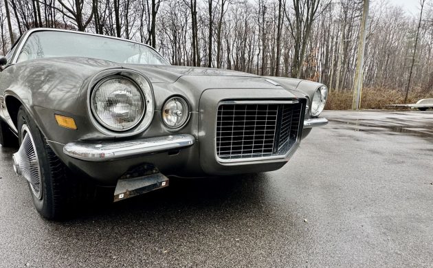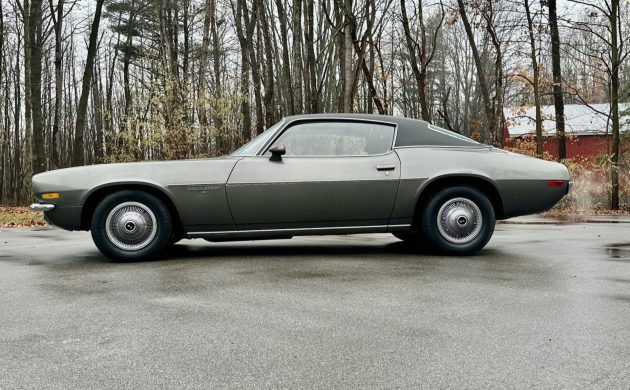 This Camaro is finished in its factory Shadow Grey exterior over a Sandelwood Custom Vinyl interior, a period-correct and surprisingly elegant color combination that suits the early second-gen body lines well. According to the listing, the car is believed to be a two-owner example and retains the kind of overall condition you’d expect from a low-mileage car that’s been cared for rather than constantly reworked. While the paint has been resprayed at some point, it’s described as driver quality, not a glossy show finish, and the body itself remains straight and solid with the RS split-bumper front end intact.