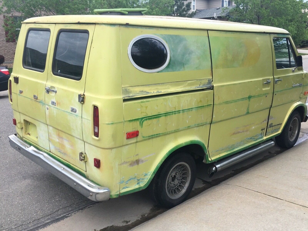 The van is currently stationed in Colorado, which could explain how it’s survived in such dry, rust-free condition as the seller claims. The paint job is clearly faded, but it’s also period-cool. If it were mine, I’d revive the graphic extending from the porthole window, and maybe revive the green pinstriping – but leave the yellow base coat as-is. The wheels are a sharp look, and from this view, I think the rear windows definitely need curtains.