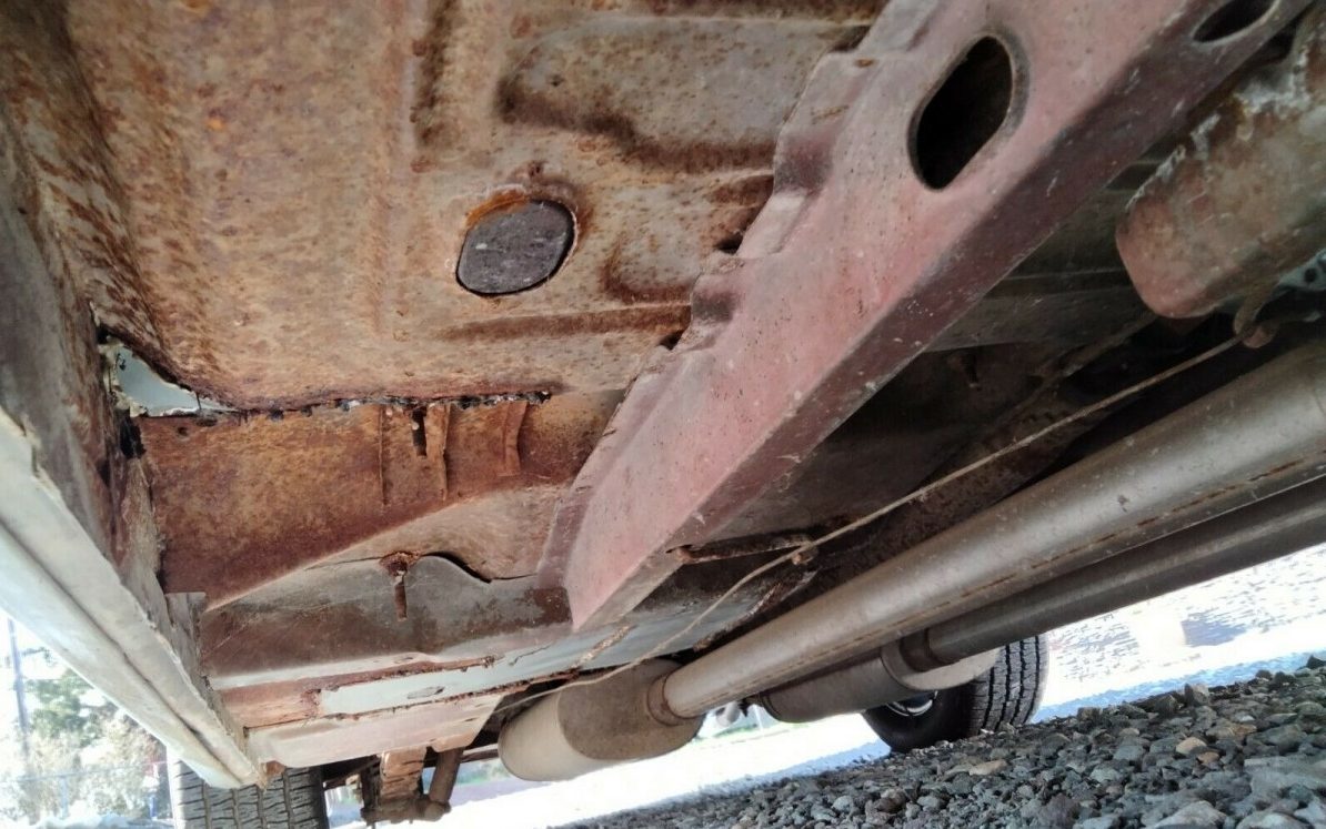 Underside images show some pan separation and panel patching – it looks a bit shaky, actually. The cargo bed, however, has held up well and appears to have been coated with a spray-in bed liner.