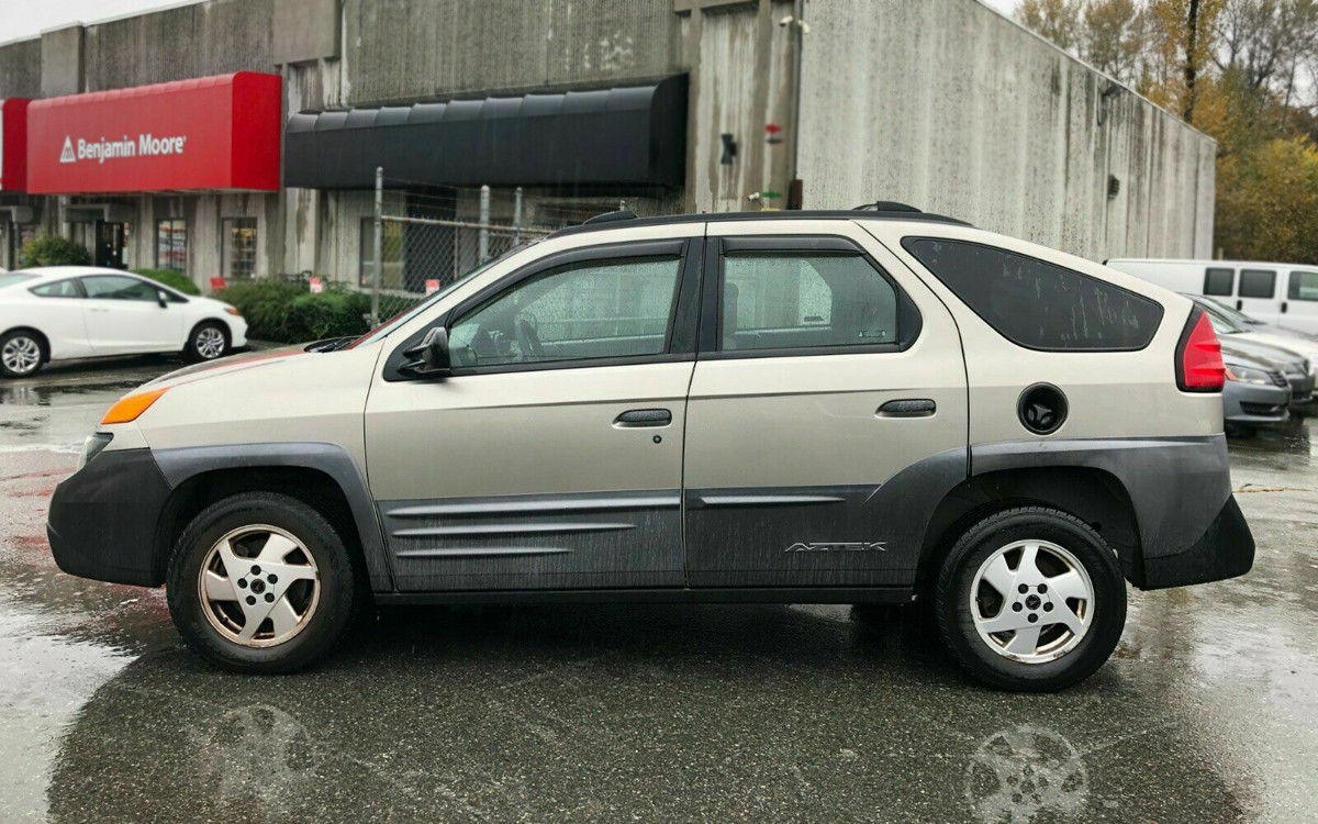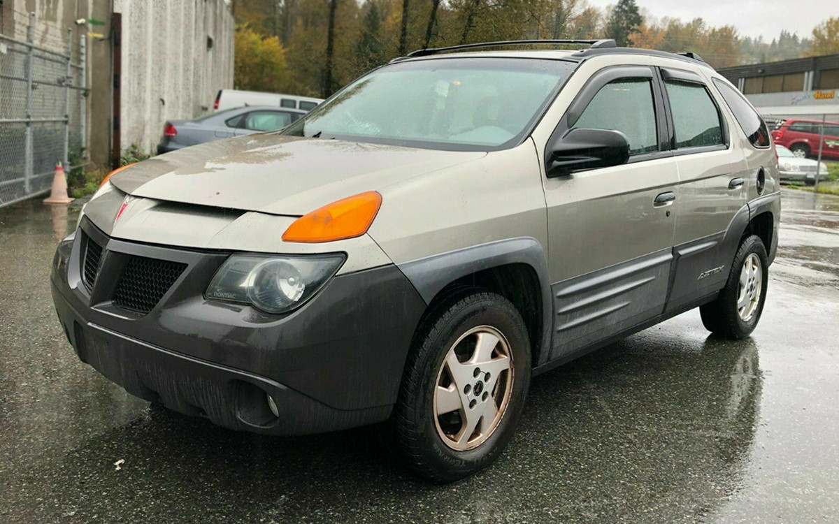 You know’em, you love ’em, you can’t live without ’em – certainly one of the most controversial and reviled vehicles ever made: we give you the 2001 Pontiac Aztek! Arthur Fonzarelli, that’s your cue. I don’t think The Fonz would have driven one but we all know who did and we’re sure it’ll come up in the comments section. This unusual styling exercise can be found here on eBay in beautiful Port Coquitlam, British Columbia, Canada. The current bid price is a whopping $102.50 but I’m not sure if that’s Canadian or US funds.